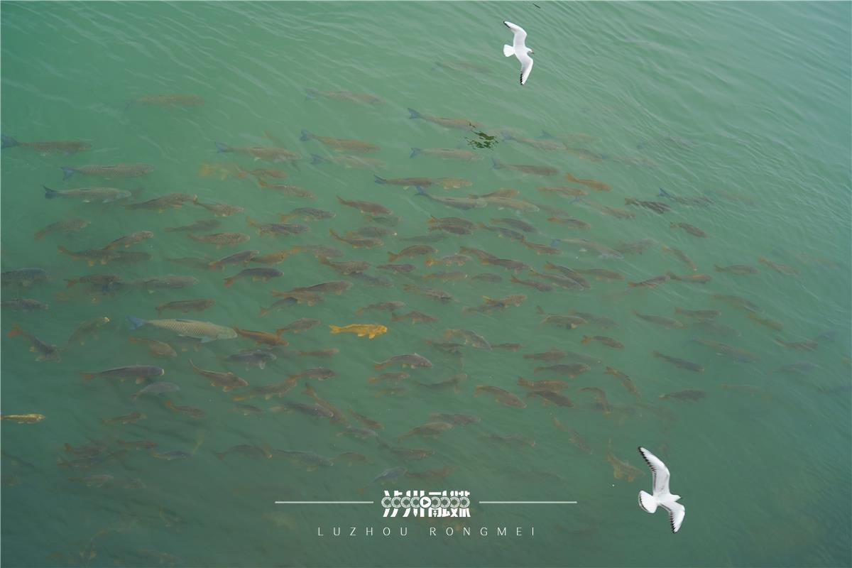 瀘州市東門口長江邊處,紅嘴鷗在江邊上翩翩起舞,除了成群結(jié)隊(duì)的紅嘴鷗在空中飛翔,鳥群之下的江水中,成群的魚兒覓食嬉戲,時(shí)而跳出水面,不時(shí)泛起漣漪。一個(gè)在天上飛,一個(gè)在水里游,不離不棄,周杰倫歌曲《珊瑚?!分械摹昂xB與魚相愛”仿佛就在此實(shí)現(xiàn)。